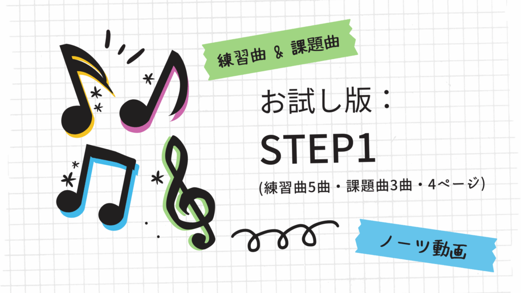 - Step1の練習曲 & 課題曲の楽譜PDF (全8曲・4ページ)