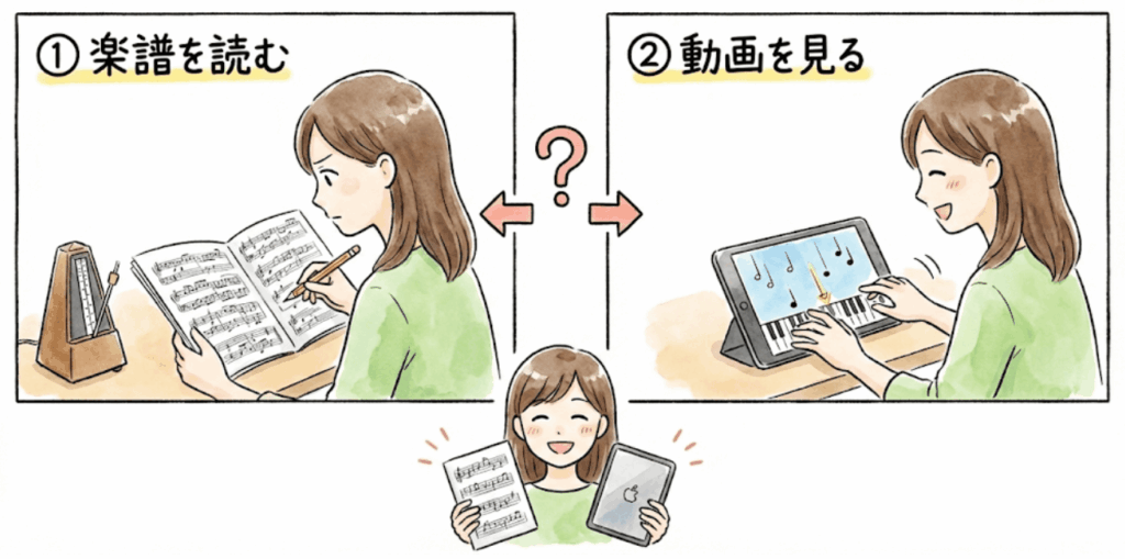 ステップ2:楽譜を読む vs 動画を見る、どっちが正解?