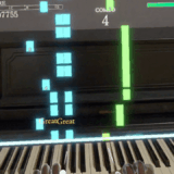 その現実の鍵盤の上に、音の棒(ノーツ)が直接降ってくるため、手元から視線を外す必要がありません。